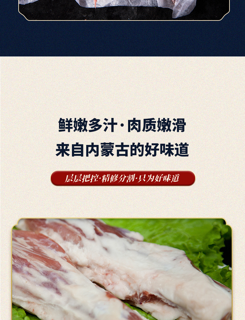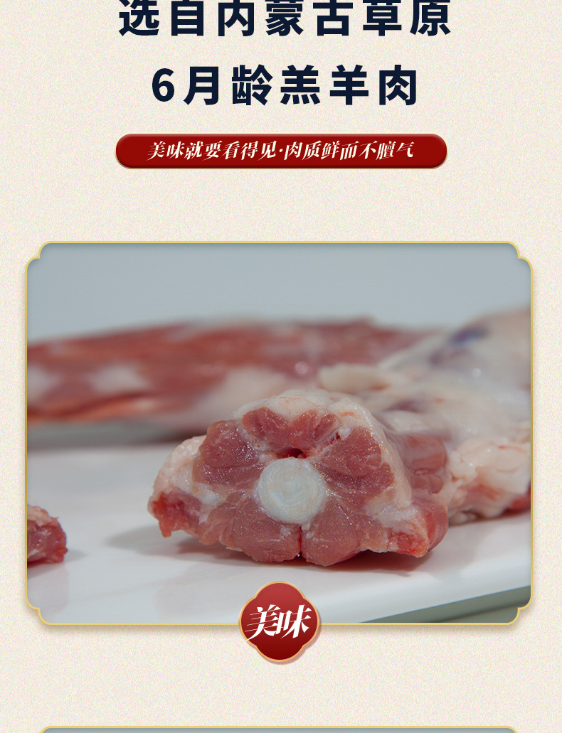 特點(diǎn):優(yōu)選內(nèi)蒙古大草原草飼羔羊,天然有機(jī)牧草豐富礦物質(zhì)地下水孕育。散養(yǎng)羔羊自然生長六個(gè)月不育肥,羊肉嫩而不柴,鮮香不膻。